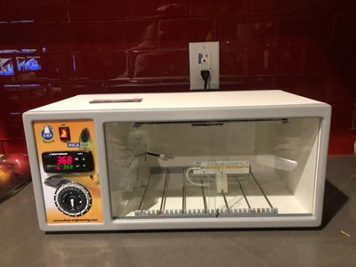Incubate the eggs in an incubator designed for parrot or exotic bird eggs. The incubator you use should have accurate temperature control within one-tenth of one degree, and ideally a system for humidity control. Maintain the temperature at 99.3 degrees F, and the humidity at 40 to 50 percent. We like the INCA.