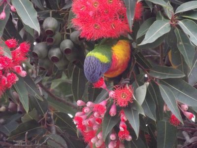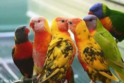 Color variations are another color form that we see quite a bit. This is where a variation that exists in the normal bird has been accentuated by aviculturists through line breeding and has become extended in its distribution over the bird. Currently there are two fine examples in Sydney in two rainbow lorikeets, held in two different aviaries. They are exceptionally fine birds but I doubt that there is any future in them. One of them is in fact currently in my aviaries and at the moment has two normal young ones. Over the next few years, perhaps I will be able to make more comment. I would like to point out why I don't think this is genetically inherited. There are too many things wrong with the bird. The red has overtaken too many other colours. The blue belly on the normal Rainbow Lorikeet has been replaced with red and this is just not possible, the blue should have gone to white. The blue head should have gone to white and should have no red through it. The beautiful golden yellow would not be seen so richly in a Lutino.