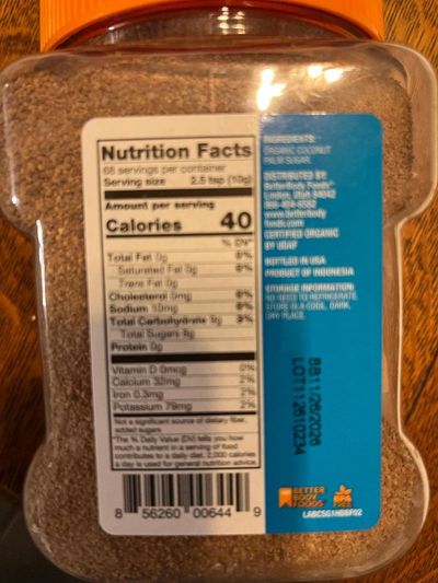 I am not for the Coconut Palm Sugar because of jungle habitat being destroyed for palm crops and it costs $250.00 wholesale for 50# of it. It makes the product look dark brown without additional nutrition. A large amount of Palm Sugar is needed for nutritional value, more than a human or bird can eat in a day. Palm Sugar, Brown Sugar, and White Sugars have the same empty calories.